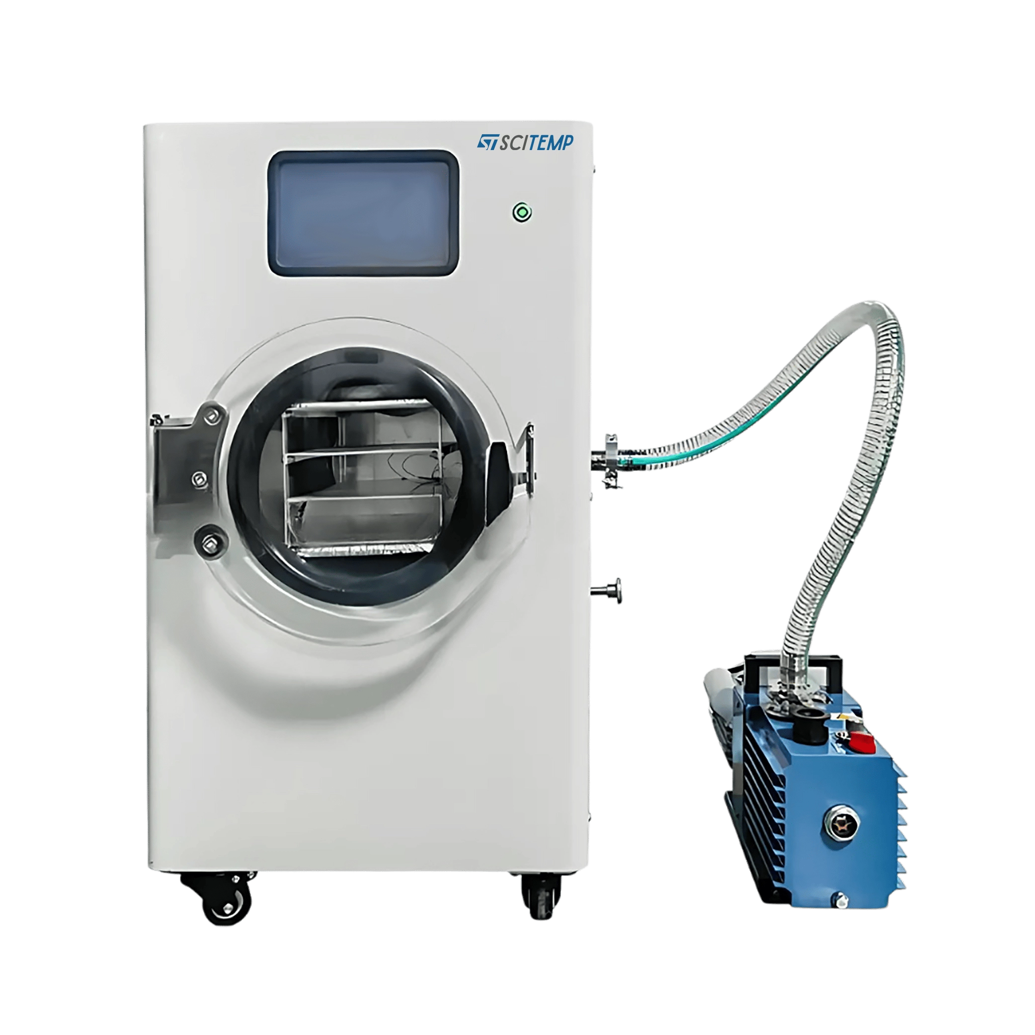 info@scitemp.comHousehold Freeze Dryer SHFD-A10 offers a drying area of 0.1 m² and a processing capacity of 1 to 2 kg per batch, making it ideal for small-scale preservation needs. It utilizes vacuum freeze-drying technology to preserve food while retaining nutrients. The 35℃ cold trap temperature of our household freeze dryer ensures efficient moisture removal and freeze-drying process.