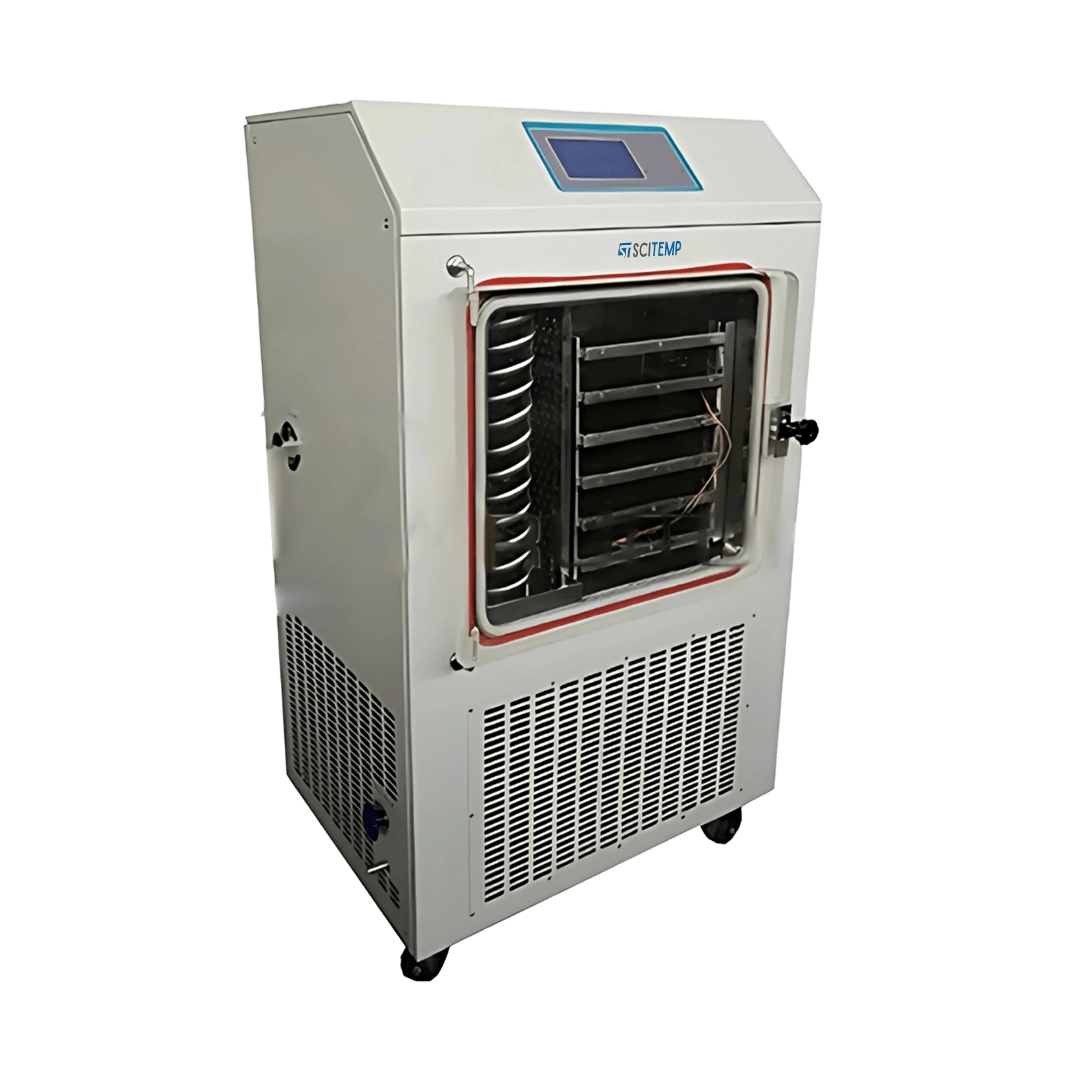 info@scitemp.comPilot Freeze Dryer SPFD-C12 offers a 0.6 m² drying area and up to 6 kg batch capacity, with both manual and automatic controls. It features a high-efficiency, low-noise compressor and automates pre-freezing and drying processes. The system uses slope-controlled shelf temperature management for stable operation, with accurate sensor calibration for long-term use. An inert gas inflation valve extends product shelf life. Our pilot freeze dryers are commonly used in the pharmaceutical, chemical, and food industries.
