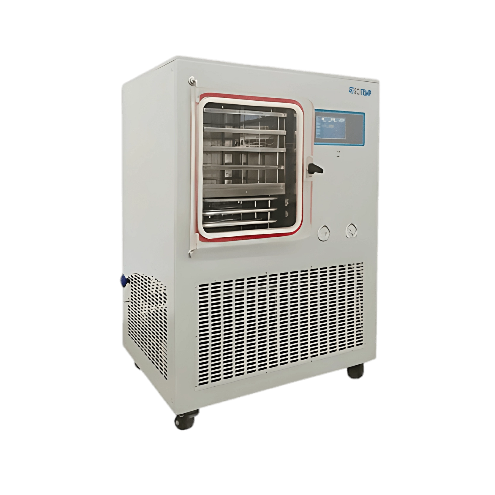info@scitemp.comPilot Freeze Dryer SPFD-C18 has a 0.7 m² drying area and 7 L bulk capacity. Our pilot freeze dryer features with high-efficiency, low-noise compressor, sensor calibration ensures accuracy, and up to 36-step recipes can be stored for flexible use. Shelf heating speeds up drying and safety system controls shelf heating rate. The PLC control system keeps shelf temperatures stable. It is used in pharma, chemical, and food industries.